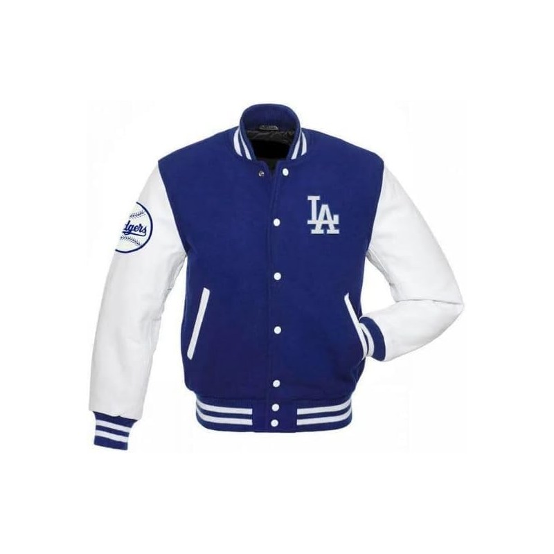 A-star plus Los ange les dodgers bule and white letterman jacket for men (US, Alpha, X-Large, Regular, Regular, Wool and Leather)