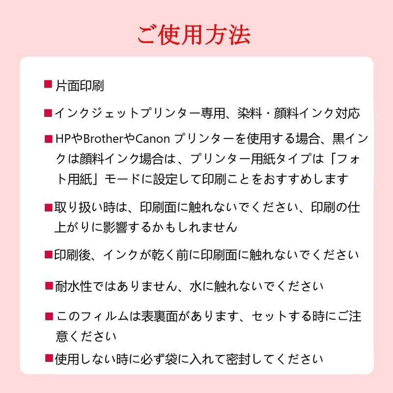 1 This film is specially designed as OHP film. Slightly cloudy. Size:A4(210*297mm) 10pcs Thickness: 115μm Transparent OHP Film Compatible Printers: For use with inkjet printers. Excellent printing finish: Quick drying, especially coated on the surface to show photos and graphs vividly, clear colors and crisp finishes. HAND WRITABLE OHP FILM: Writes with dry erase markers can be erased cleanly without damaging the print area. Perfect for printing graphs, business charts and profiles, and printing educational documents and documents. Wide application: transparent PET is widely used in office graphs, presentations, crafts, classroom printing, craft and embossed DIY Note: To distinguish the printed surface, lay the film flat and the bottom right corner is the printed surface.