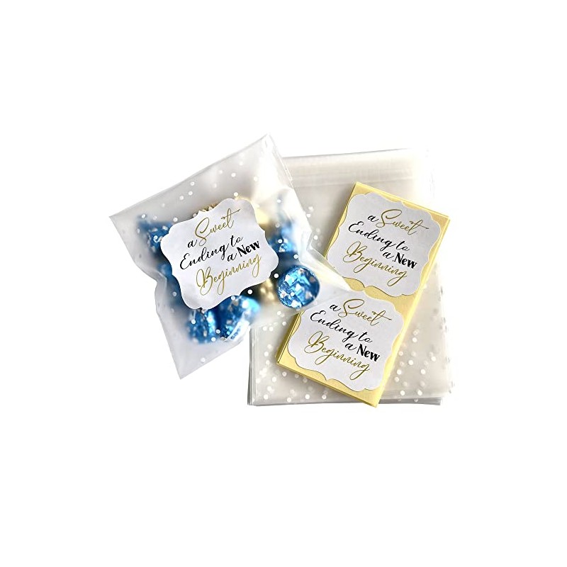 • "A Sweet Ending To A New Beginning" Party Favor Kit: 30 Label Stickers + 30 Bags