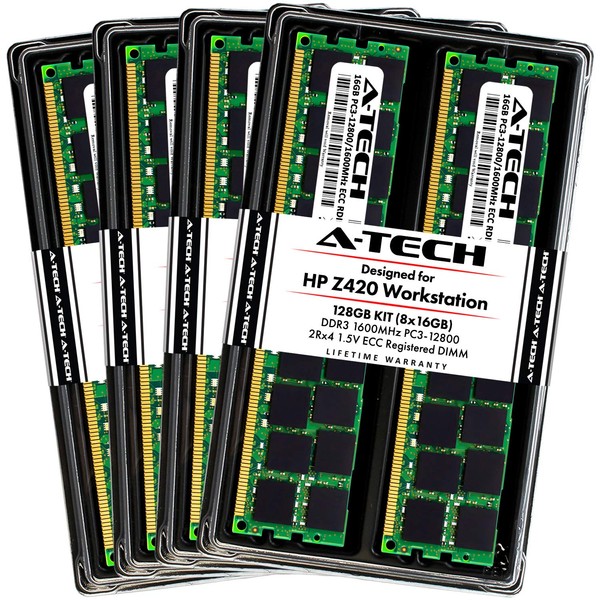 A-Tech 128GB ECC Registered Memory Kit for HP Z420 Workstation (8 x 16GB) ECC RDIMM DDR3 PC3-12800 1600MHz 240-Pin DIMM 2Rx4 1.5V Dual Rank Max RAM Upgrade
