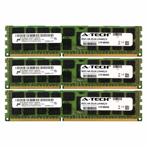 A-Tech Micron 24GB Kit 3X 8GB PC3-10600 1.35V for Dell Precision Workstation T5600 20D6F T7500 SNPJDF1MC/16G T7600 A6996807 T5500 A2626071 A2626092 A3721494 A3721500 A3721505 Memory RAM