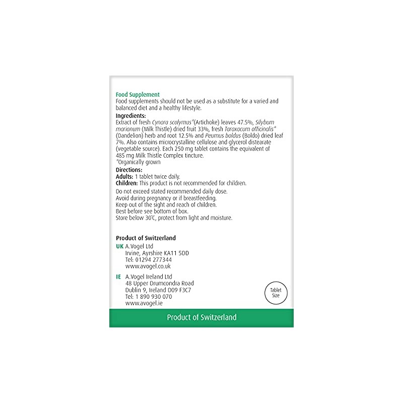 • SUITABLE FOR: A.Vogel Milk Thistle Complex Tablets is suitable for Vegetarians and Vegans. It is also free from dairy, gluten, GMO, artificial colours and flavours, wheat, yeast, sugar and lactose.
