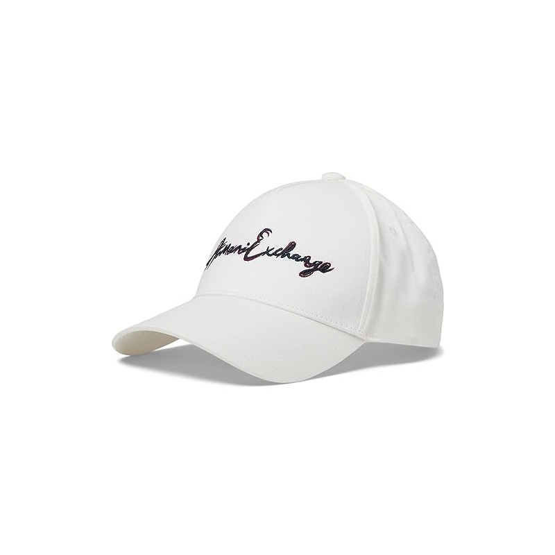 A|X ARMANI EXCHANGE Men's Script Logo Baseball Hat, Off White/Navy, One Size