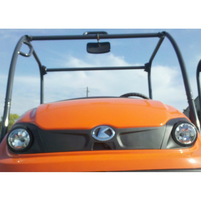 - Large Rearview Mirror for your Kubota RTV 400 and 500: 4 1/2" x 8" mirror face. Curved to see everything behind you! Easy to install with OEM style bracket to mount to your roll bar. OEM style bracket is made of metal with a rubber grommet wrap. Used to hold on the canopy tops and windscreens by the OEM. Durable mirror for all terrains. Will not vibrate! Be safe and be able to see what is going on behind you.