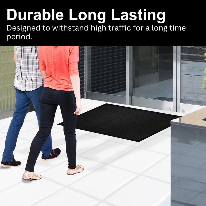 - SLIP-RESISTANCE SURFACE AND BEVELLED EDGES: The textured surface provides excellent traction, reducing the risk of slips and falls and ensuring safety for your family and guests. These are also pet friendly. Ensure the mat lies flat before using. To flatten, roll the mat in the opposite direction a few times until it falls flat. It is suggested after unpacking to keep the rubber door mat outdoors in direct sunlight for a few hours.