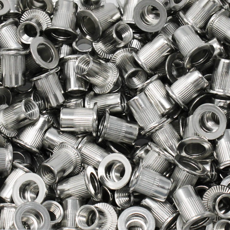 A2 Stainless Steel Flat Head Rivet Nut with Round Shank Knurled and Open Metric Thread (M12, Pack of 5)