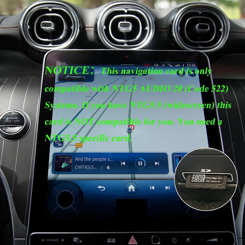 - This navigation card is only compatible with NTG5 AUDIO 20 (Code 522) Systems. If you have NTG5.5 (widescreen) this card is NOT compatible for you. You need a NTG5.5 specific card. DOES NOT WORK WITH NTG 5.5 WIDESCREEN 10.25" C-Class Models.