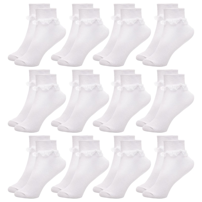 A2Z 4 Kids Girls Socks 12 Pack Frilly Lace Ankle with Delicate Lace Trim - Socks AZ977 White 12 Pack 3-6