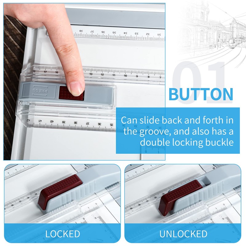 - Practical function: the straightedge ruler can not only slide back and forth in the groove, but also has a double locking buckle; You can fix the ruler on the drawing board by lightly pressing, and coordinate with other rulers to draw or read; The buttons on the edge can control the opening and closing to fix the drawing paper