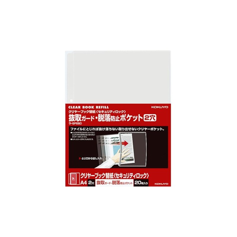 コクヨ ファイル クリアファイル 替紙 脱落防止 A4 縦 2穴 20枚 ラ-SP680