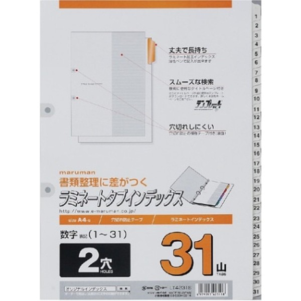 マルマン インデックス A4 2穴 インデックスシート 31山 数字入り 1組 1冊 LT4231S