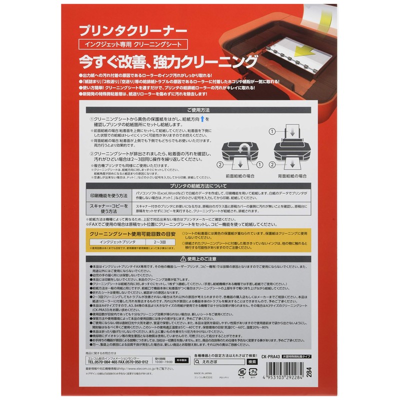 エレコム クリーニングシート インクジェット専用 プリンタクリーナー A4 3枚入り CK-PRA43