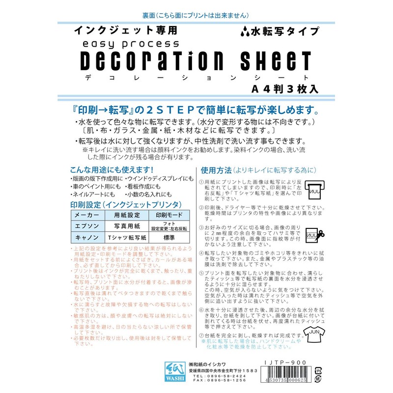 和紙のイシカワ インクジェット用 水転写紙 A4