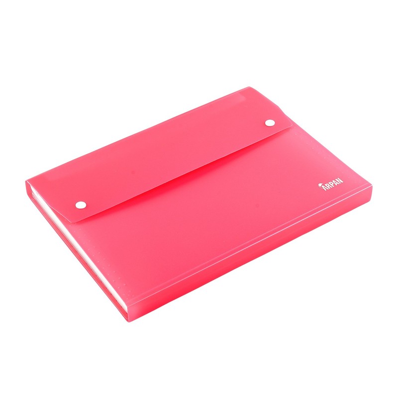 A4 Expanding File Folder - Clear 13 Gusset Pocket Folder - Multi Section Folder with Stud Wallet Closer - Document Wallet Folder by Arpan (Pink)