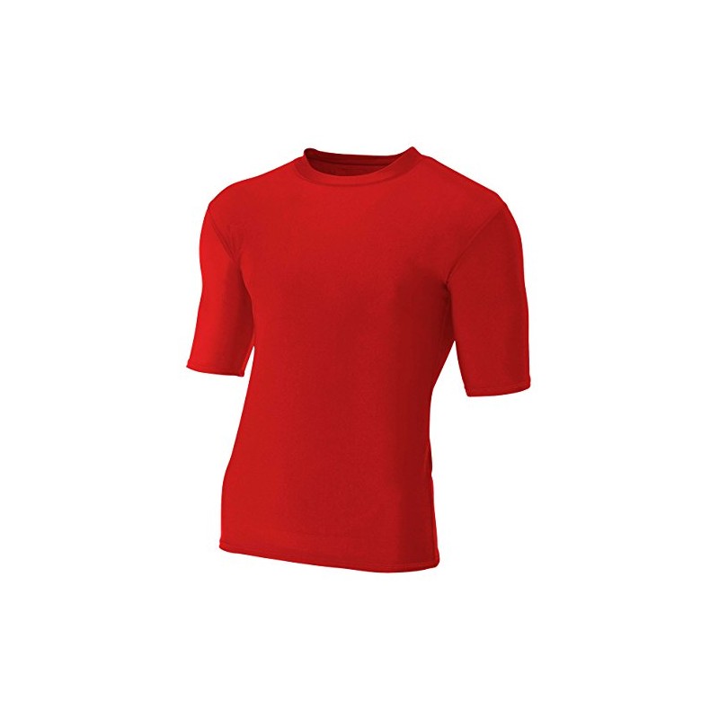 A4 Men's Compression Crew 1/2 Sleeve, Scarlet, Large