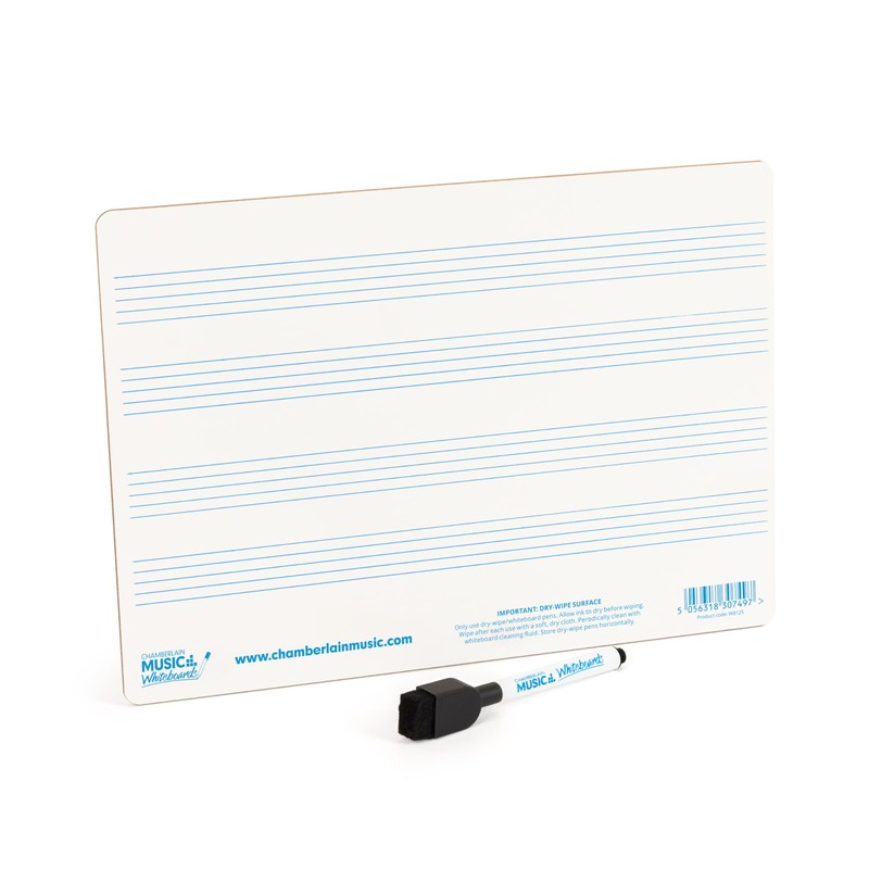 - [CHAMBERLAIN MUSIC A4 MUSIC WHITEBOARD WITH 4 PRINTED STAVES] Designed specifically for music education, this whiteboard is a versatile, durable learning tool suitable for the classroom, home practice and revision. Compact and easy to handle, the whiteboard is built to last.