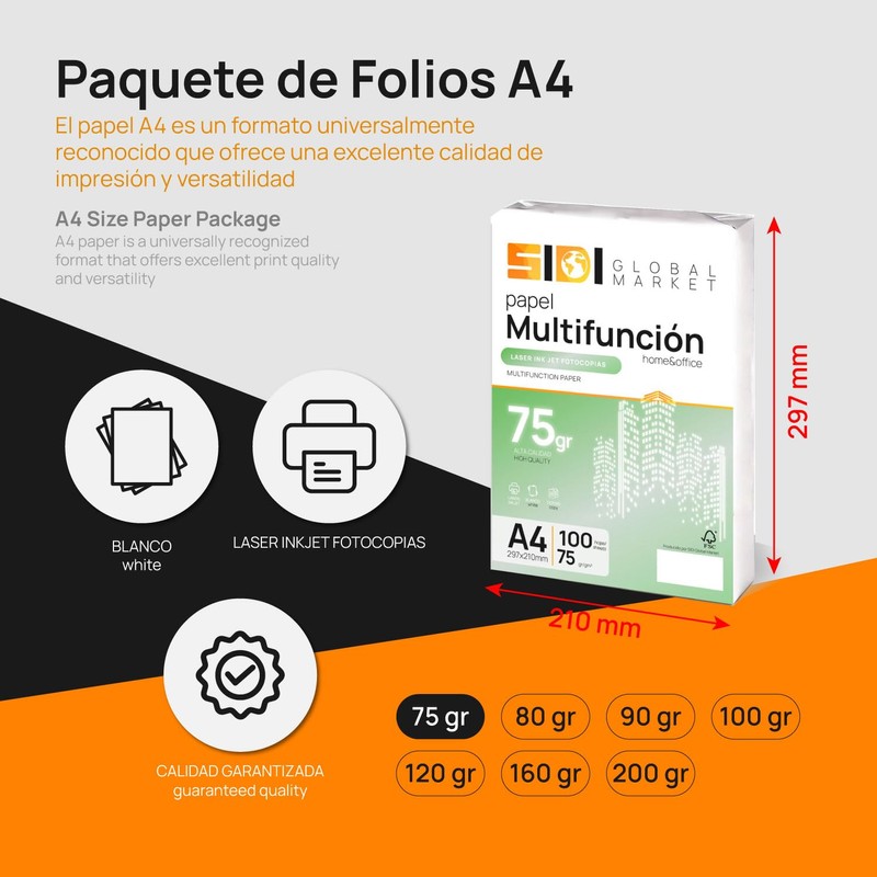 A4 Paper 75g Printer Paper A4 Pack for School, Work or Home Use, A4 Sheets for Copier and Multipurpose, A4 Paper Extra White - SIDI (100 h, 75 g)