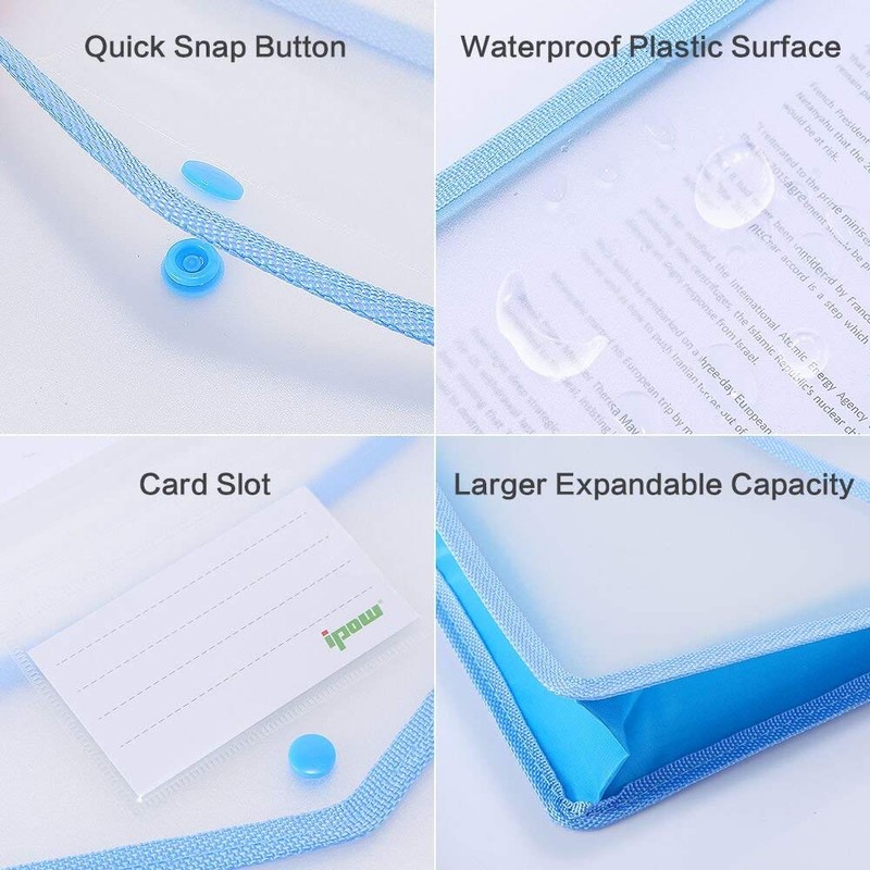 A4 Plastic Wallets, Ipow 6 Pcs Plastic Folders Document Files Folders Popper Wallet Envelope Pockets Large Capacity with Quick Snap Closure, Card Slot for Office Home School Travel
