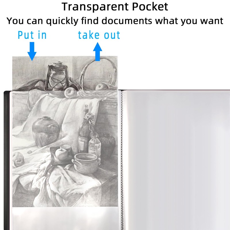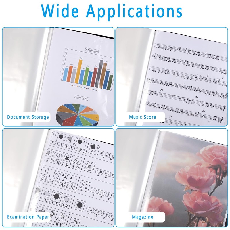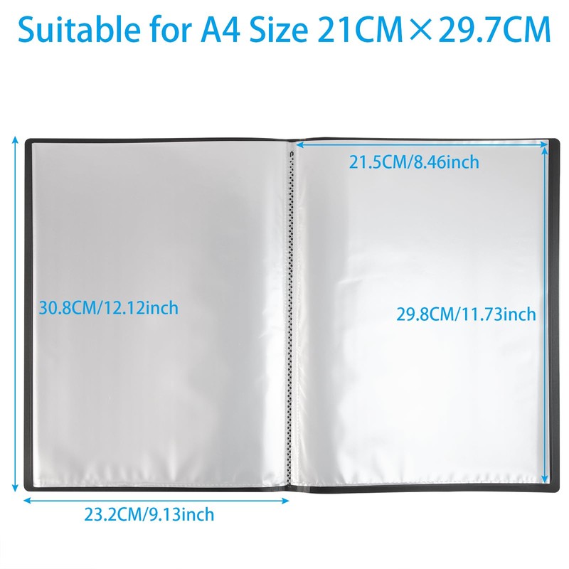 - A4 Size: The size of A4 folders with plastic pockets is 23.2*30.8CM/9.13*12.12inch. This A4 presentation folder has 110pcs transparent display pockets, suitable for organizing up to 220pcs A4 sheets (2 sheets per Pocket), display book folder A4 takes less room to store files.