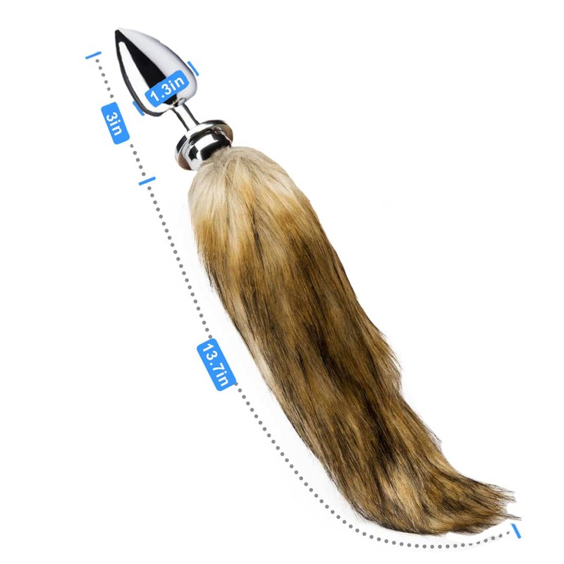 - Plug Kit Material: stainless steel + plush, smooth surface. Soft, comfortable, skin-like, easy to clean. The metal texture is smooth, comfortable and cold feeling. This product measures 17 inches in length. Stainless steel section width: 1.3 in. Length: 3 inches; The fluffy part measures 13.7 inches.