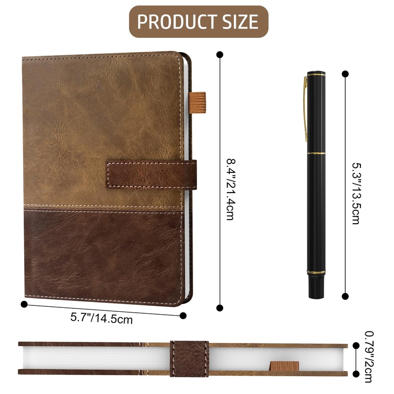 - 【TWO-TONE LEATHER COVER】Featuring a fusion of brown and dark brown leather, this lined journal showcases an elegant vertical split design. The dark brown magnetic clasp, with brown upper panel as background, creates a visually striking yet minimalist closure. Made of high quality faux leather, the cover is soft and comfortable to touch, sturdy and durable to use.