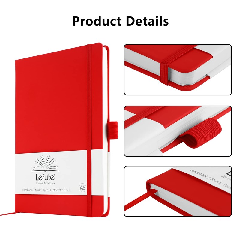 A5 Notebook, Notebook A5 200 Pages 80 GSM Journal Notebook Hardback Notepad with Lined Pages, Pen Loop, and Inner Pocket (Red)