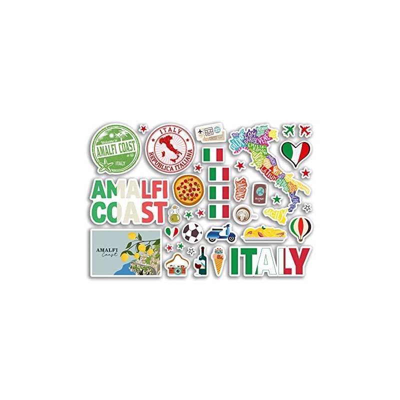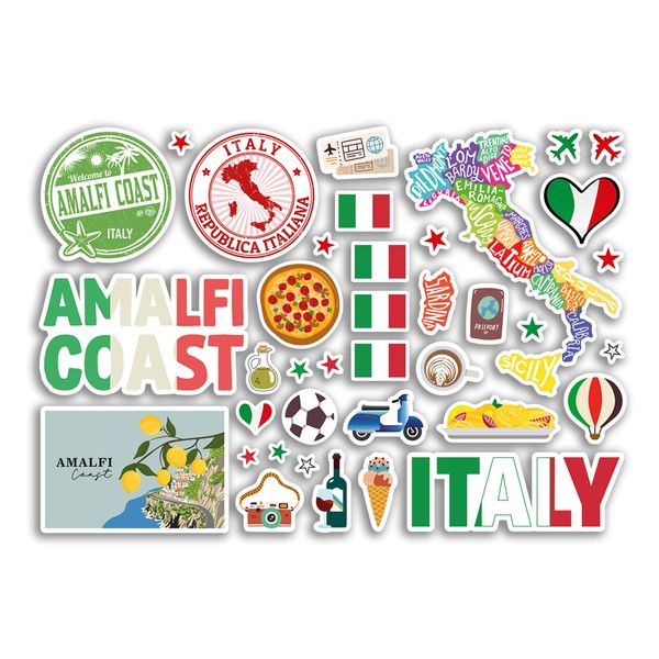 A5 Sticker Sheet Amalfi Coast Landmarks Vinyl Stickers - Italy Italian Stamps Skyline Flag Travel Holiday City Scrapbook Aesthetic #80488