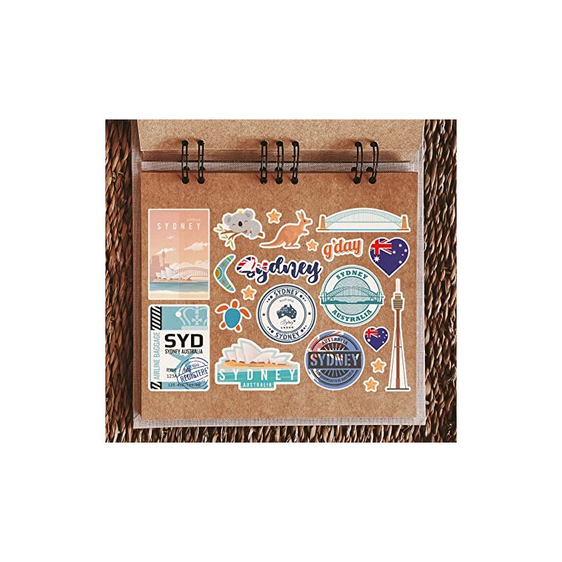 A5 Sticker Sheet Sydney Vinyl Stickers - Opera House Bridge Australia Landmarks Holiday Stamp Summer Map Flag Travel City Luggage Scrapbooking #79030