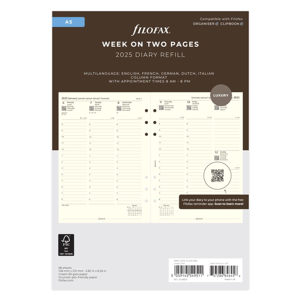 A5 Week on two Cotton Cream 5 Language column format 2025