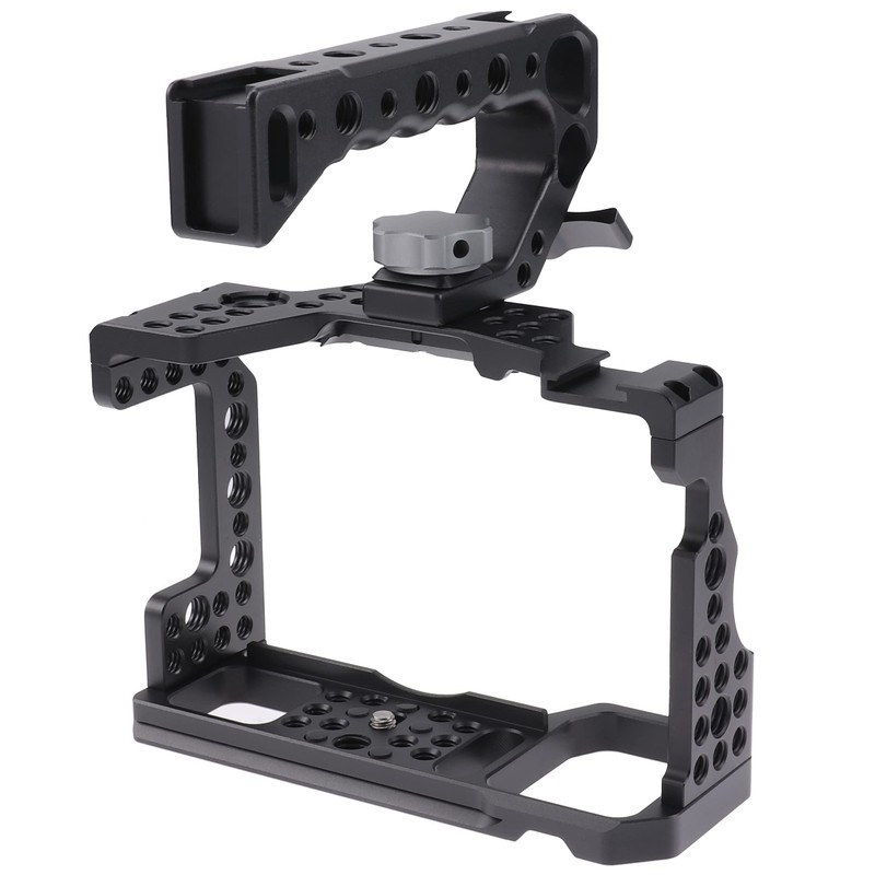 - The top handle is designed for handheld shooting, can hold the weight of a large cage rig with various attachments with ease.
