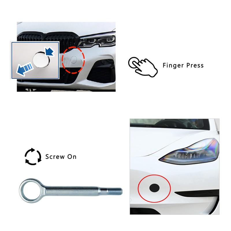 - [Easy installation]:Just screw on and apply, simple and quick to install, making towing the car safely without damaging the front bumper