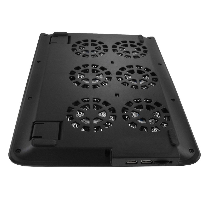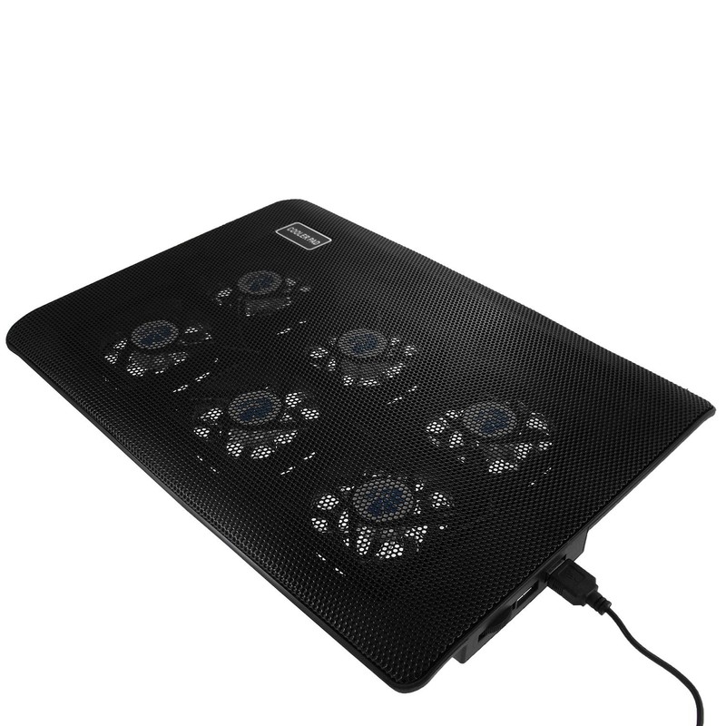 • Air flow: large dissipation of heat (max. 114 CFM) » 6 x fans that direct cold air and blow exactly against the bottom of the attached notebook via the holes on the top. This reduces the temperature of the laptop and ensures good cooling of the processor core