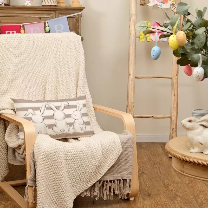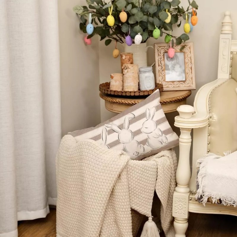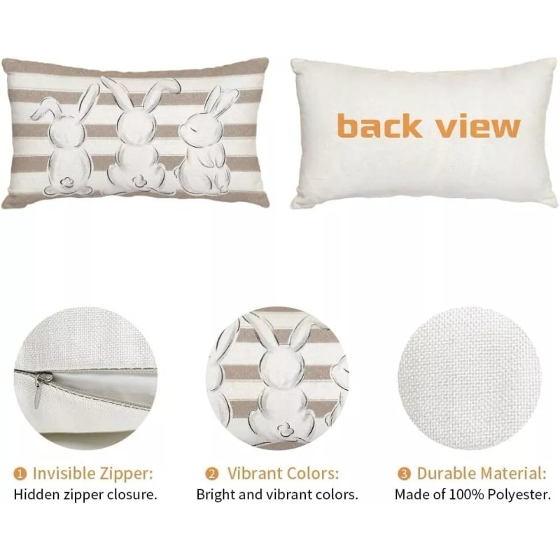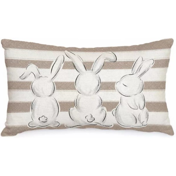Aacors Easter Pillow Covers 12X20 Inch Striped Bunnies Rabbits