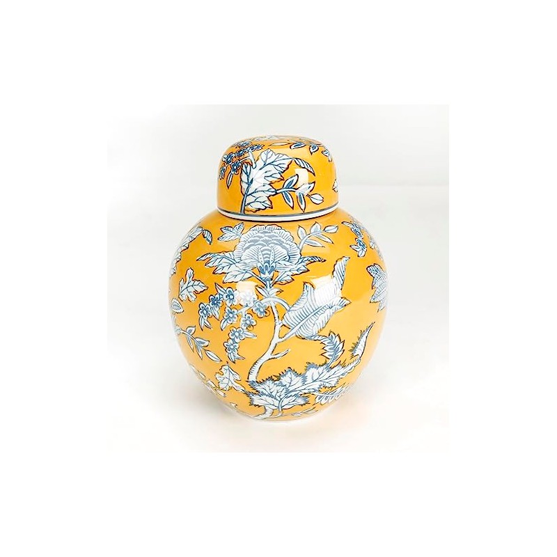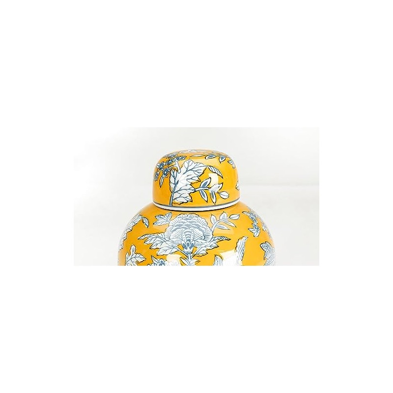 AAI Tropical Leat Round Porcelain Jar, Yellow and Blue
