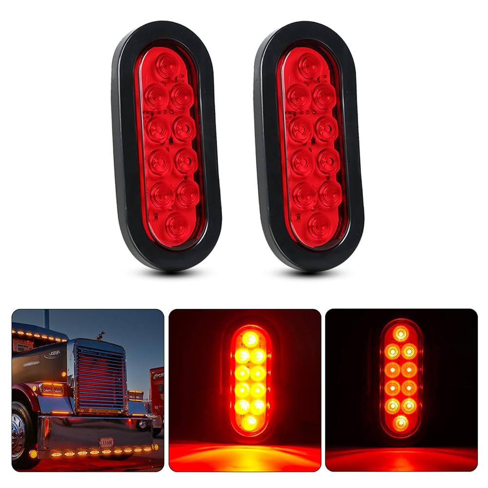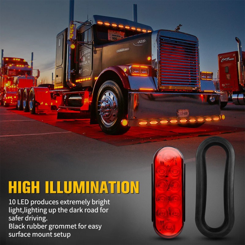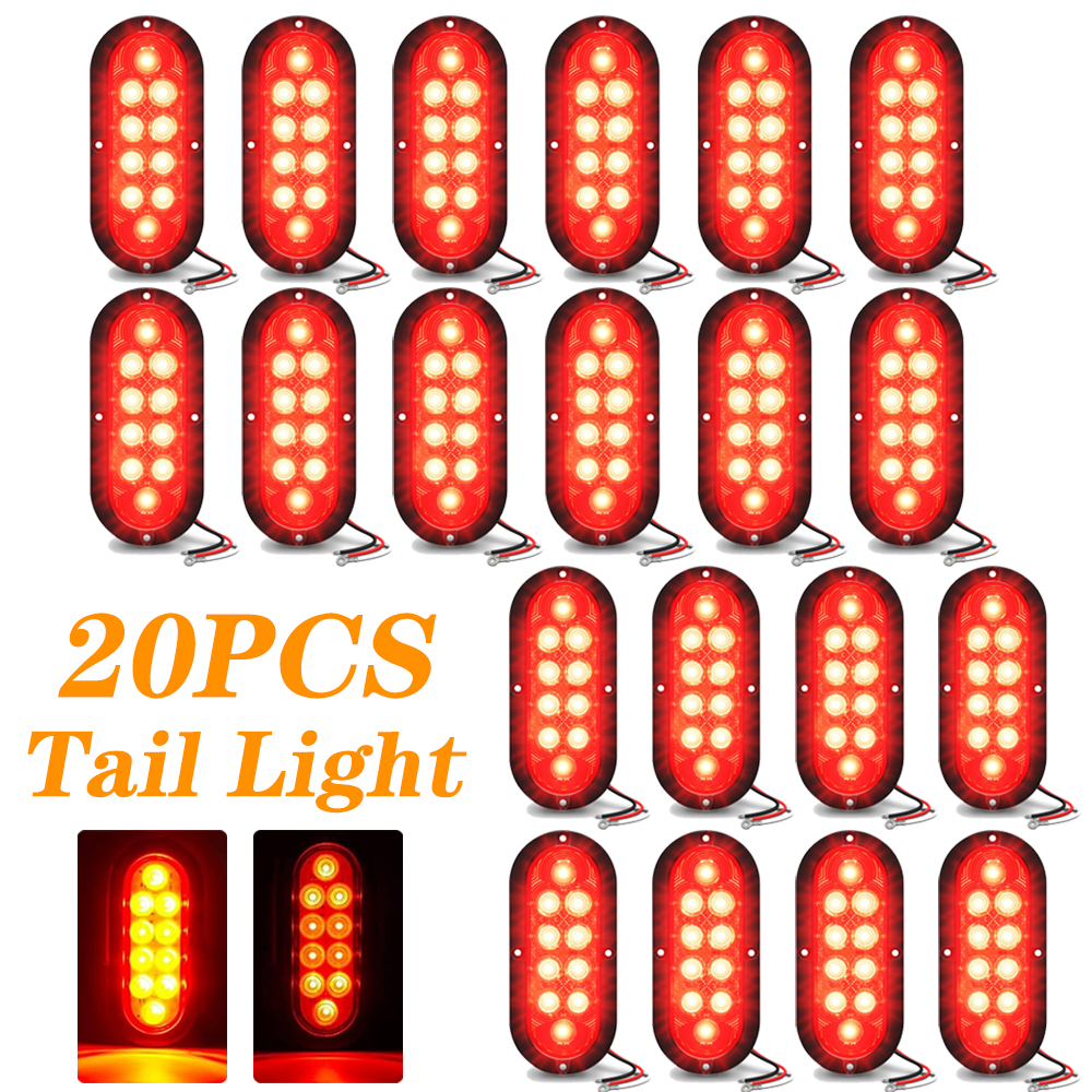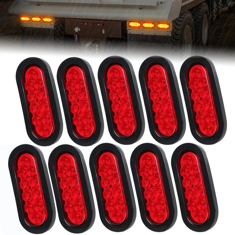 Aaiwa 20X Red 6" Oval Trailer Lights 10 LED Stop Turn Tail Truck Sealed w/Grommet Plug