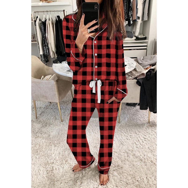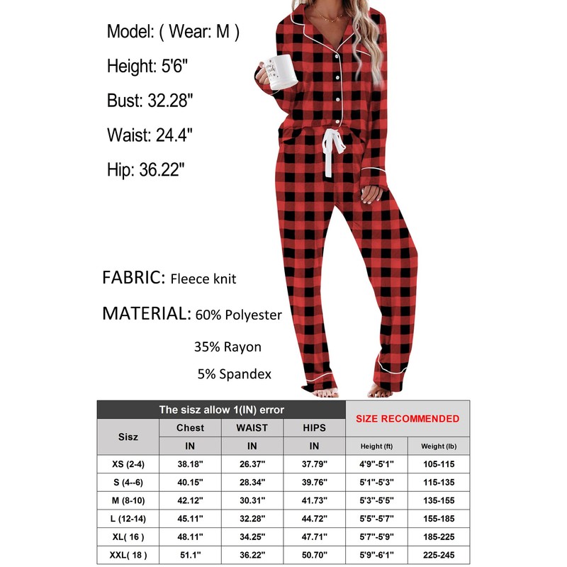 Aamikast Pajama Sets for Women Soft Button Up Christmas Pjs Matching Sets (Plaid Red XL)
