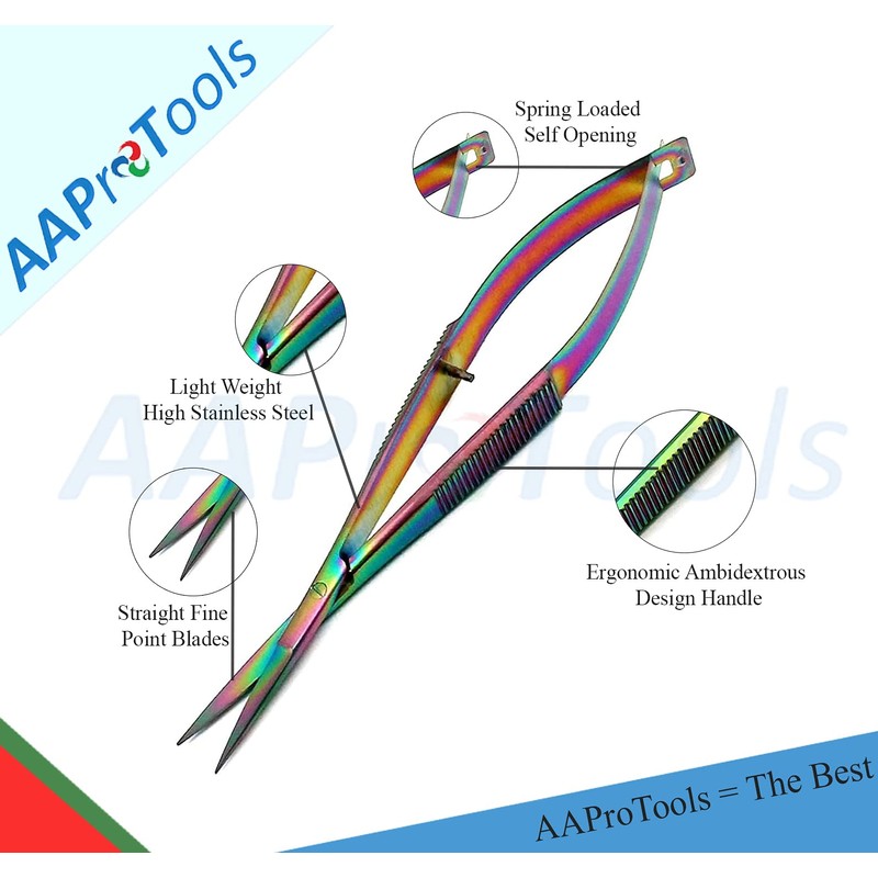 • AAProTools 4.75" Rainbow Titanium Embroidery Snips Straight Scissors Trimming Threads