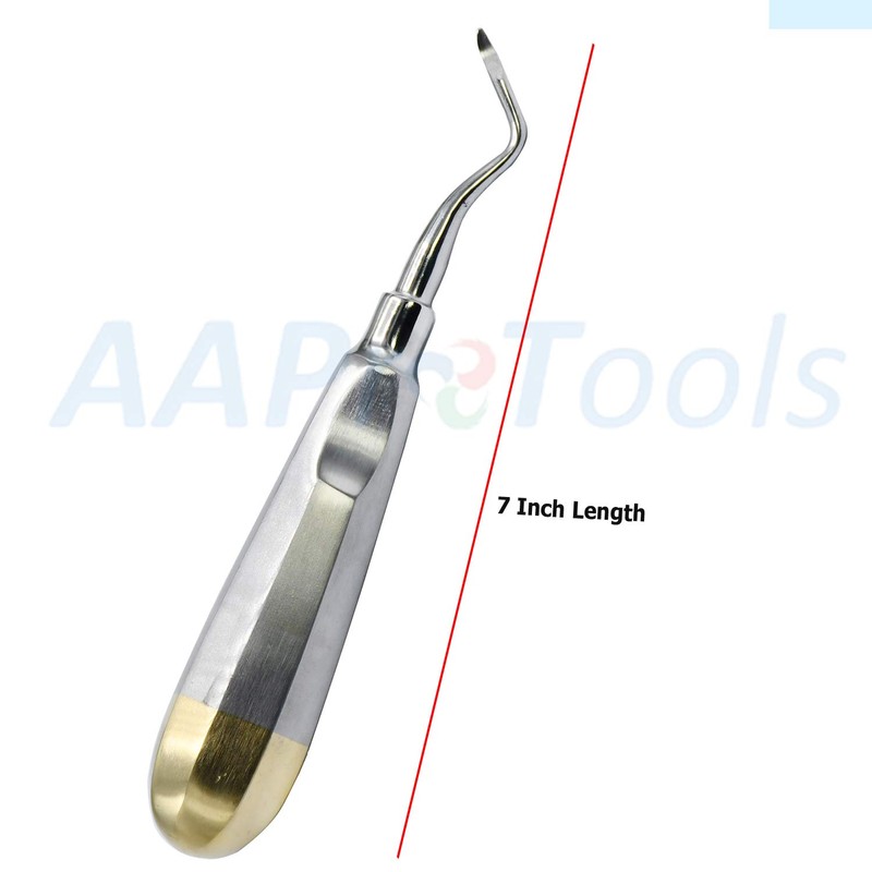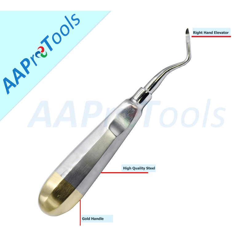 - AAProTools Heidbrink Root Tip Sharp Pointed Ends Elevators Set Left, Right & Straight Angle Gold Handle Dental Instruments