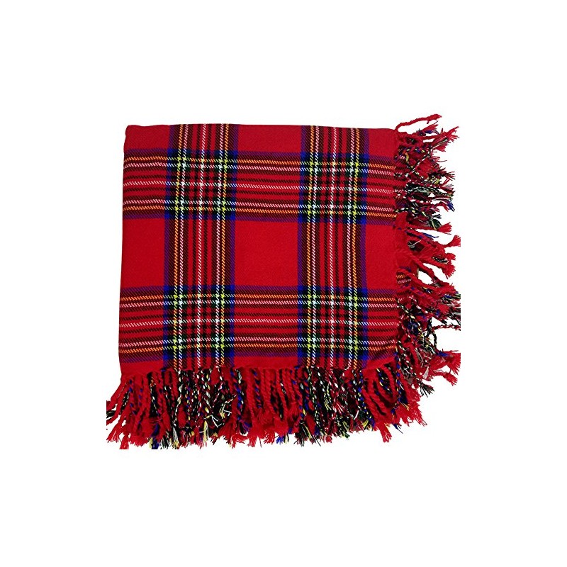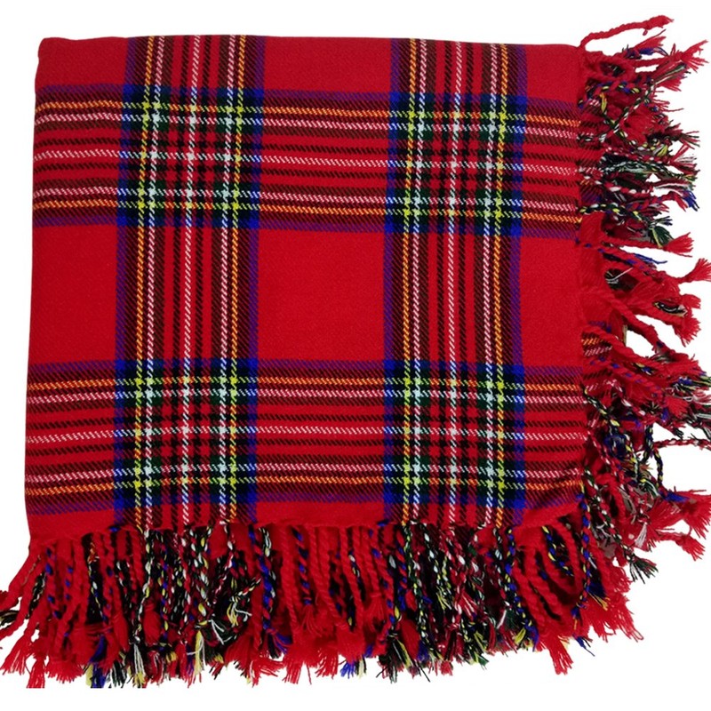AAR Kilt Fly Plaid Acrylic Wool Scarf Rolled Fringe Shawl