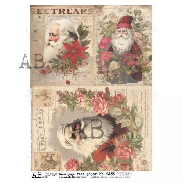 AB Studios Postcard Santa | A4 Rice Paper | Paper for Decoupage | AB Studios
