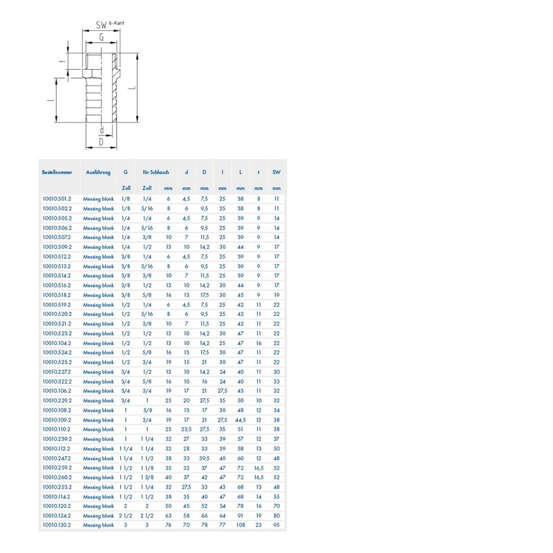ABA Beul 10010.112.2 Threaded Hose Connector with Hexagonal and Male Thread 1 1/4 Inch x 32 mm Brass