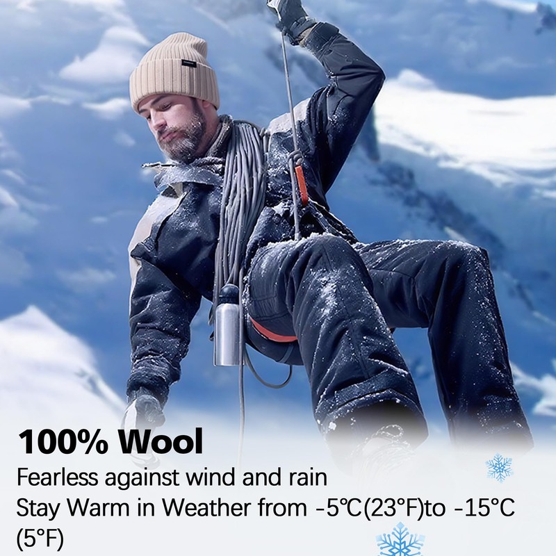 - 【Premium 100% Wool】 Pure Wool MaterialNatural Warmth, it has been tested to have a 60% higher warmth retention than acrylic, and can still maintain warmth in an environment of -15 ℃. Moisture absorption and sweat wicking, With better water absorption than cotton, it quickly releases sweat to keep the body dry and comfortable after winter exercise