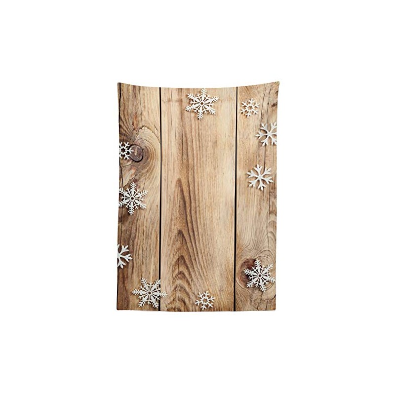 ABAKUHAUS Christmas Tablecloth, Wooden Plank Snowflakes, Waterproof, Washable with Clear Visible Colours, No Fading, Personalised, 140 x 170 cm, Light Brown, White, Brown
