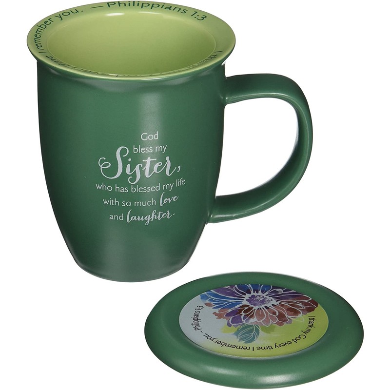 Abbey Gift Abbey & CA Gift Sister Mug and Coaster Set, 2 Piece, Green