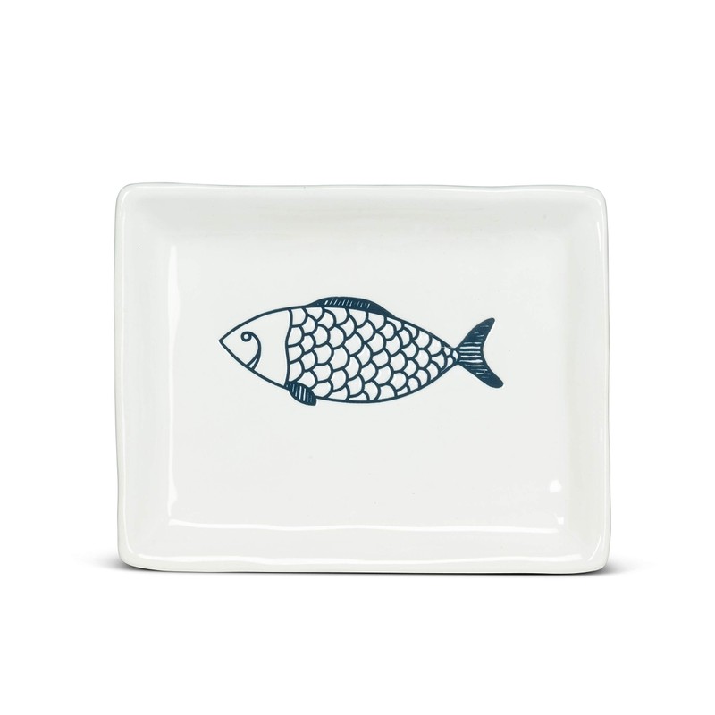 Abbott Collection 27-CORFU-550 Small Rectangle Fish Plate, 1 EA, White/Blue