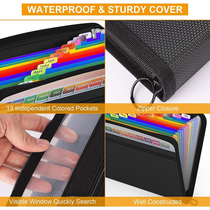 - Upgraded colourful design: the ABC life 13-pocket accordion folder has been updated with beautiful coloured inner pages for a better visual sense. The unique colourful design of adhesive labels helps you classify and find your files effectively. Each file can be customized according to your needs.