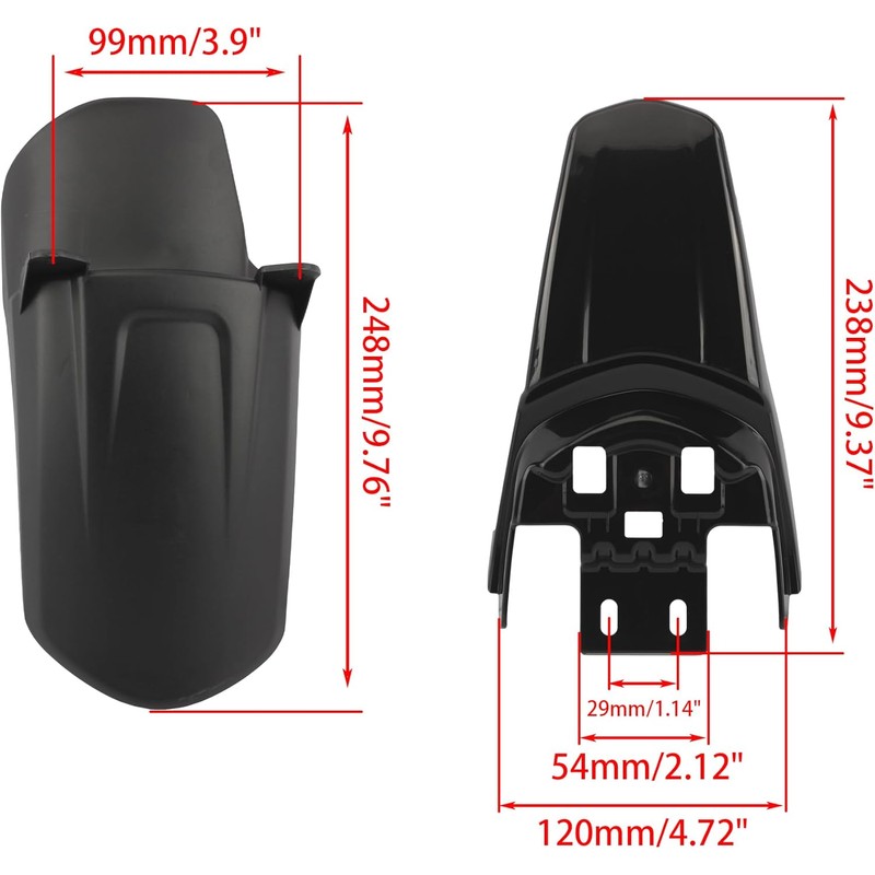 [EFFECTIVE PROTECTION] The motorcycle fender prevents the silt from damaging the tire in some tough conditions.Even prevents us from throwing road debris at other vehicles and pedestrians.