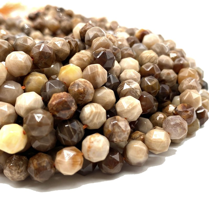 - Introducing our American Silicified Wood Opalite beads, crafted using the double hearted cutting technique to create a stunning diamond-cut satellite shape. With this technique, each edge of the bead is planed to a flat surface, resulting in a beautifully faceted surface that refracts light from all angles. These beads are perfect for jewelry making and will add a touch of elegance to any project.