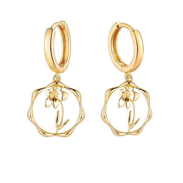 ABDOT Gold Dainty Birth Flower Earrings 14K Gold Plated Floral Huggie Hoop Earrings for Women Wildflower Earrings Valentines Day Earrings Mar Daffodil Earrings