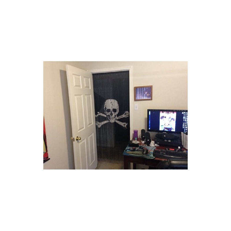 ABeadedCurtain 125 String Pirate Flag Jolly Roger Beaded Curtain Handmade with 4000 Beads (+Hanging Hardware) 38% More Strands and Beads